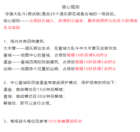 堡垒是15分钟之后才能攻占,皇城是半小时之后。全程占领1座边哨可以获得:60秒÷10秒x1积分x60分钟=360积分全程占领1座堡垒可以获得:60秒÷10秒x3积分x45分钟=810积分全程占领1座皇城可以获得:60秒÷10秒x8积分x30分钟=1440积分当然这是最理想的情况下,正常情况是不可能一开始就能占到的,尤其是皇城!因为在俱乐部不会被淘汰的情况下,大家都可以肆无忌惮的出去争夺积分点。所以一个有实力的俱乐部开局拿1座边哨,等堡垒开了争夺1座堡垒,守好这两个据点,然后派有余力的玩家去无限制的骚扰别人拿皇城是最稳妥的打法。