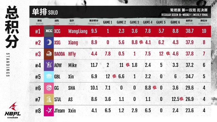 NBPL周决赛首冠:王梁单排逆袭,GG三排称霸!