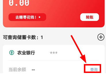 2、然后你就可以看到余额查询的功能,在这里能看到自己绑定的银行卡,然后点击下面的当前余额后面的查询即可。