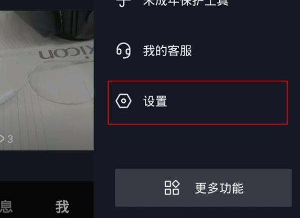 1、打开抖音,在“我”界面点击三横图标,选择【设置】。