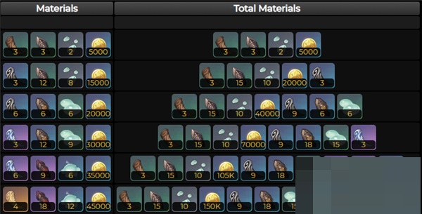 凛风奔狼的裂齿*6、夤夜刻像*6、史莱姆清*6、摩拉*20000;