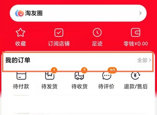 1、打开手机淘宝app,在“我的”淘宝界面点击【我的订单】。
