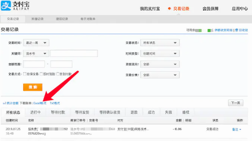 接下来直接选择下载账单中的“excel格式”就可以下载了