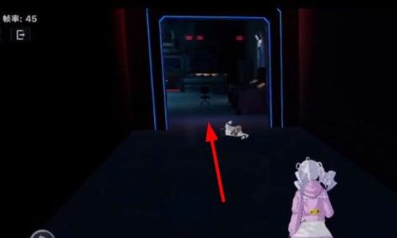 1、领取任务以后我们从下图漆黑的房间朝着箭头指的方向移动。