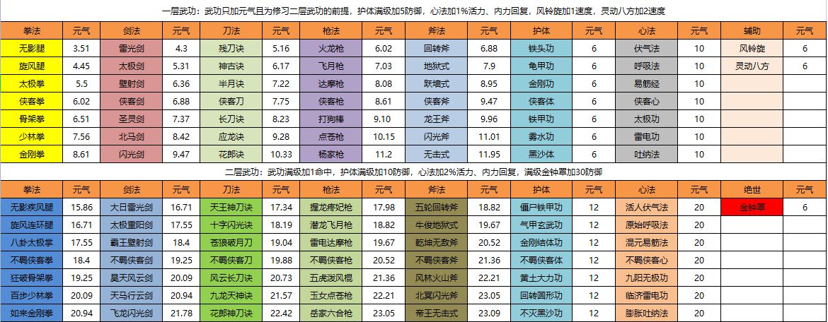 5、维持:目前只有二层武功附带维持值,当被攻击破防御小于维持时,人物可以不用进入(恢复)休息状态。