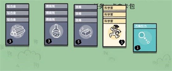 5.接着我们开始建造棚子,保持卡牌的数量,现在开始寻求智慧卡包,然后能抽到数字语言和文字,然后将村民和他们放在一起,就可以得到科学家。