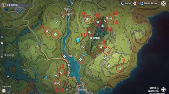 图中标有14个能量块,其中1、7、8、9这四个不建议去拿,拿10个就够了)