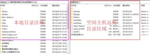 2、登录后,在左边可以看到本地目录,右边可以看到远程目录。