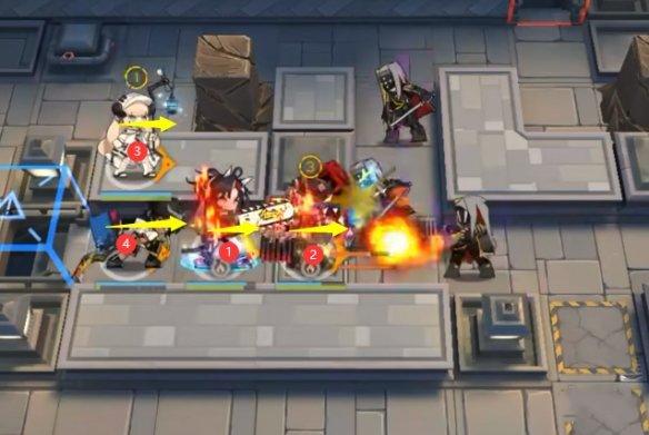 下图所示的位置顺序部署 → 塞雷娅 → 夜莺 → 棘刺就可以了,棘刺技能好了就开。