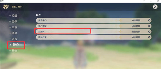 3、在设置界面中,点击进入账号界面,就可以看见兑换码
